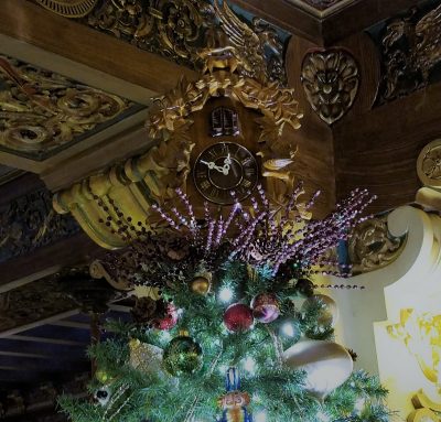 The trees are always so gorgeous and imaginative. When I saw the cuckoo clock topping one of the trees, it reminded me of the family heirloom that sits on the wall at my house. My children stop it when they come. I suppose if one is not used to the twice hourly cuckoo bird leaving his nest to cuckoo, it might disrupt your sleep. But I love it. When I hear it at 3 AM, I am eight years old again being comforted that all is well.
