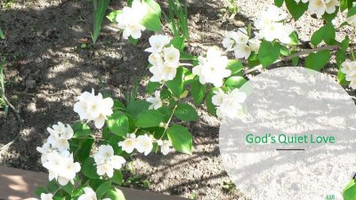 I have visions of sitting on my porch on a warm, sunny day. My gardens surround the porch and the colorful blooms wave with sweet perfume on the soft breeze. The bees buzz as they go about their work and the birds chirp in the trees. I watch butterflies glide in circular motions together before they fly away. This is quiet. Yes, God’s love does permeate the atmosphere. All over this pleasing scene.