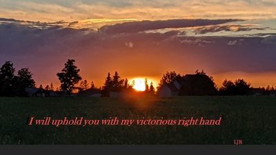 Held in our Father’s righteous right hand is a place of honor. He cherishes us. Each one. It is a place of affirmation and encouragement. To be with Him. To be what He has created us to be. Called by Him. Our way prepared. Possessing undeserved favor. This can only come from the Righteous Judge who sees into our hearts.