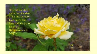 “For he will not dwell unduly on the days of his life, because God keeps him busy with the joy of his heart” (Ecclesiastes 5:20 NKJV).