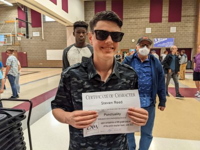 Steven was the first performer for the evening ceremonies. He loves to play his guitar. He and two other musically artistic young men entertained us. And two young women spoke to inspire and encourage their peers.