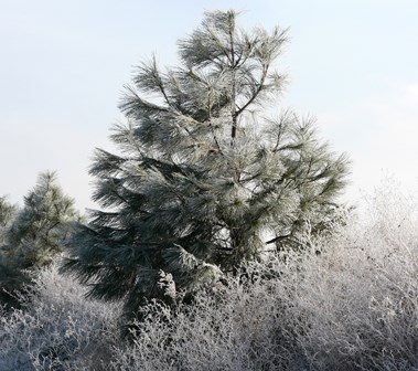This week the fog closed in, and the hoarfrost has been beautiful. But everything is gray and white. I long to see color again.