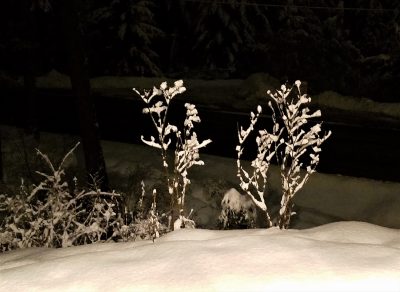 A bit later on that same trip, still dark in the fog, two little girls had cold feet. We’d trekked around in the ice and snow and we must have been shivering because Dad and Paul dropped their gear and built a fire. Each of them had a child on a knee. They removed boots, rubbed feet until we could feel our toes again.