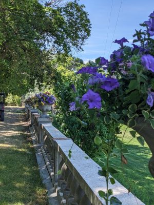I fancied I could see to eternity along the stone railing outside the house. The blue petunias lined the way.