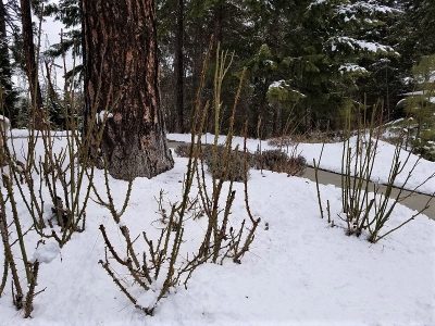 THEN we got snow. And it melted in two days. At this point, at least here, I could only laugh at the weather. But my roses look like sticks. Good grief.
