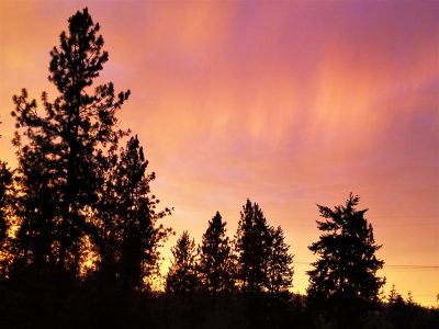 The blue sky begins to turn pink and the gilding moves to the clouds. The trees become shadows. A soft breeze cools the air to pleasantly comfortable and I settle into my chair with a contented sigh.