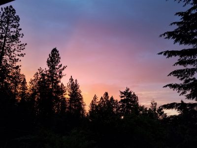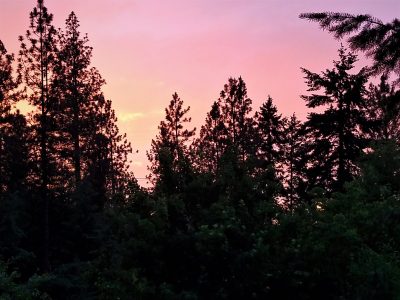 So, perhaps that is a good time to sit on the porch in the presence of God. The sun closes in on the rim of the sky and extends its fingers of light across the trees, turning them gold, then into silhouettes. The sky turns to fire as red, pink, gold, and purple splay across the horizon.