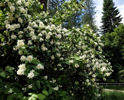 I have a mock orange bush in my back yard. When I sit on my porch, looking at the mountains in the distance, the scent of the mock orange wafts around my house and I sit and take in that heavenly aroma.