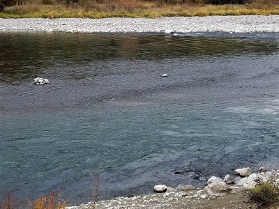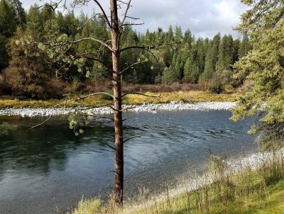 Further downriver is the Take-Out at Seven Mile. In the summer, lots of floats, kayaks and swimmers fill the area. But today it was quiet. When the clouds parted to reveal the sun briefly, I was surprised to find that I could see beneath the surface of the water to the rocky bed. In fact, I could see the rocks all the way across to the opposite bank. Usually the water flows too deep or fast to see the bed of the river at all, much less all the way across.