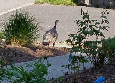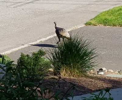 About forty turkeys march back and forth and back and forth through my neighborhood all day long, every day. They go along mostly in single file. They waddle. They run (that looks funnier than snort!) and sometimes they fly. It’s really amazing to watch them fly. Somehow, they manage to get their bulky bodies in the air, and flap their large wings. It makes a whirring sound as they do this together, clucking all the time. I suppose most of us need to comment no matter what we are doing, too. Turkeys don’t soar, they do a short-term air sprint and plop back onto their feet. I am astounded that they don’t get hit by the whizzing cars.